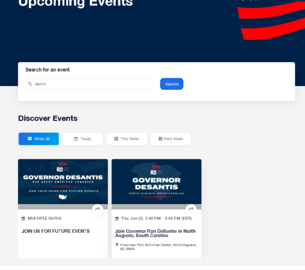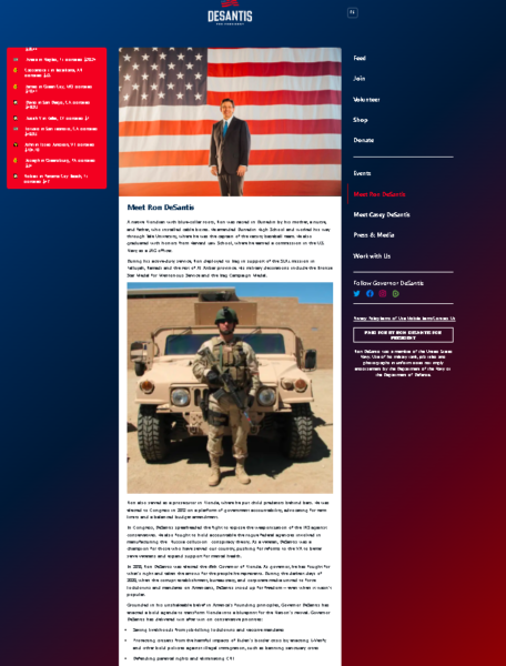To make it even crazier, the tabs that are opened direct you to a WinRed page, which has a different avatar, so you wind up with the Ron DeSantis home page and a bunch of WinRed tabs and the pages have no navigation to go back to any other part of the page. You can’t go from ‘donate’ to ‘volunteer’, etc. Each page is totally isolated from the others. It’s F’ing bananas.