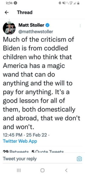 How does Matt Stoller feel about American belligerence and using Ukraine as a proxy? Great of course.